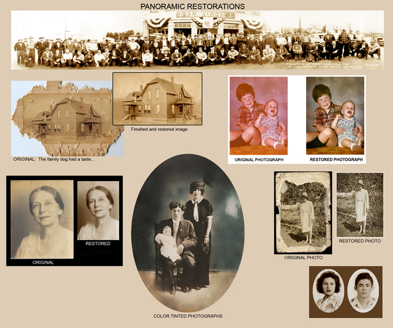 Restoring and bringing your old photographs back to their original look is our specialty, We can reproduce your original and make you multiple copies of your photographs to share with other family members. We can repair torn, faded or water damaged originals. We do not work on the actual original image but on a reproduction. You will get your original print back the way you brought it to us. many times our reproduction will look better than the original.
